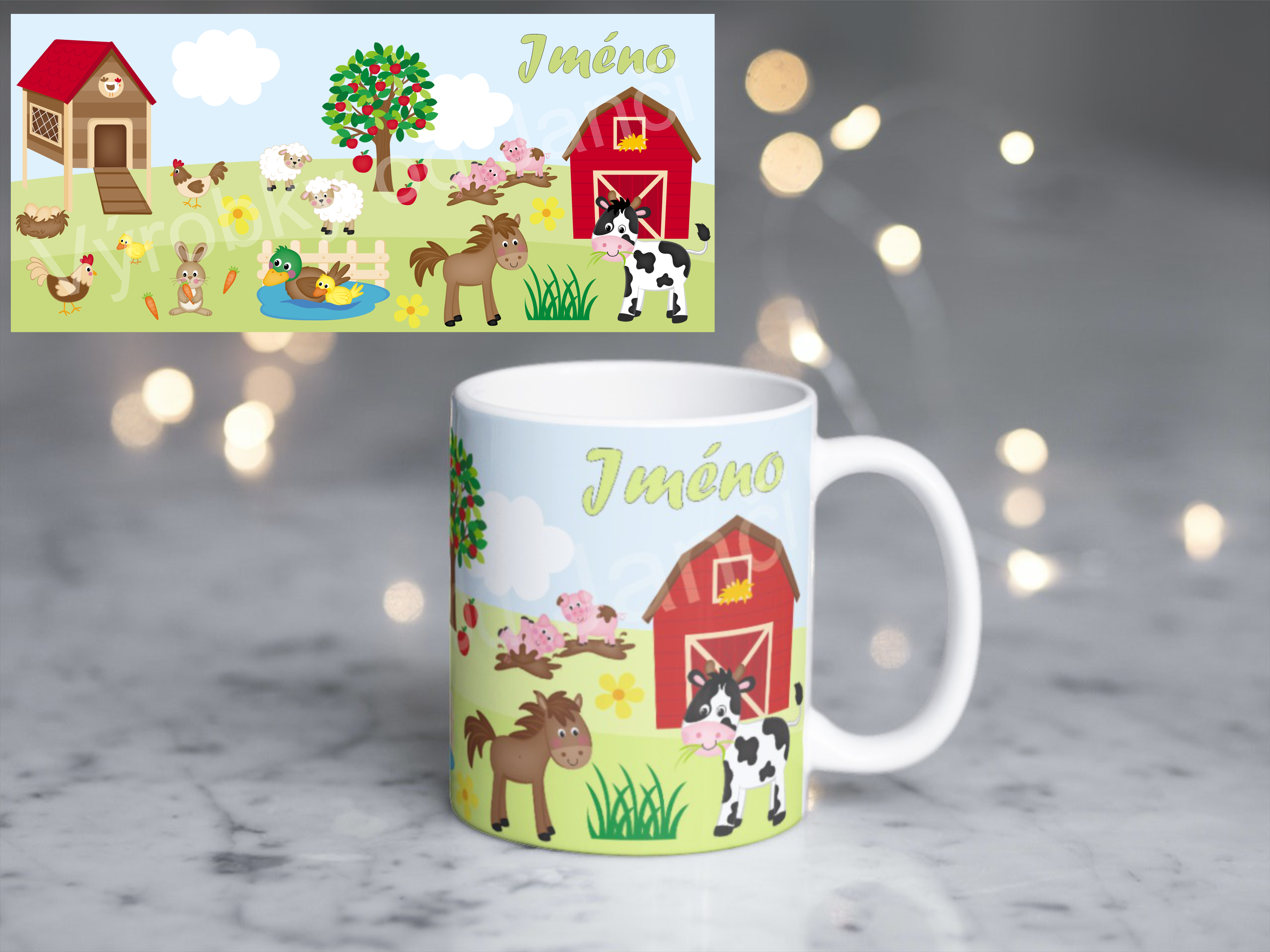 Plastový hrneček - farma